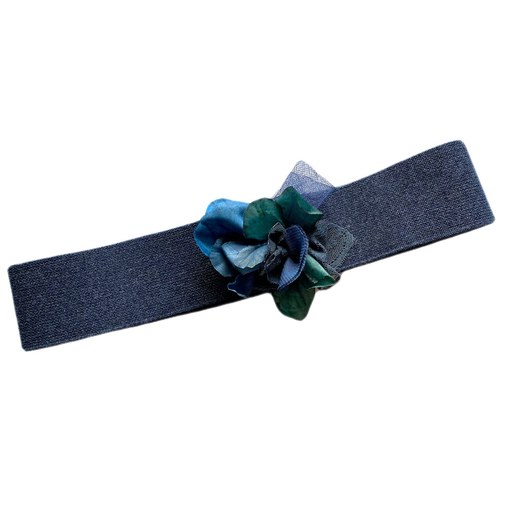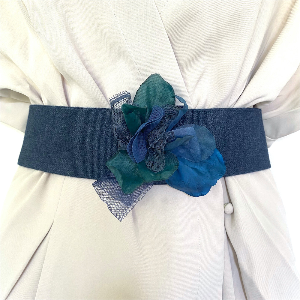 cinturón de elástico grueso con flor hecha a mano