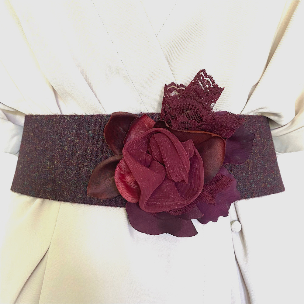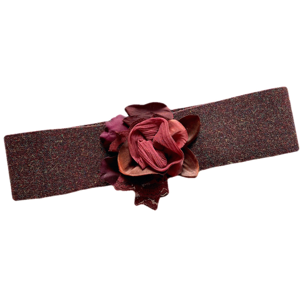cinturón de elástico grueso con flor hecha a mano