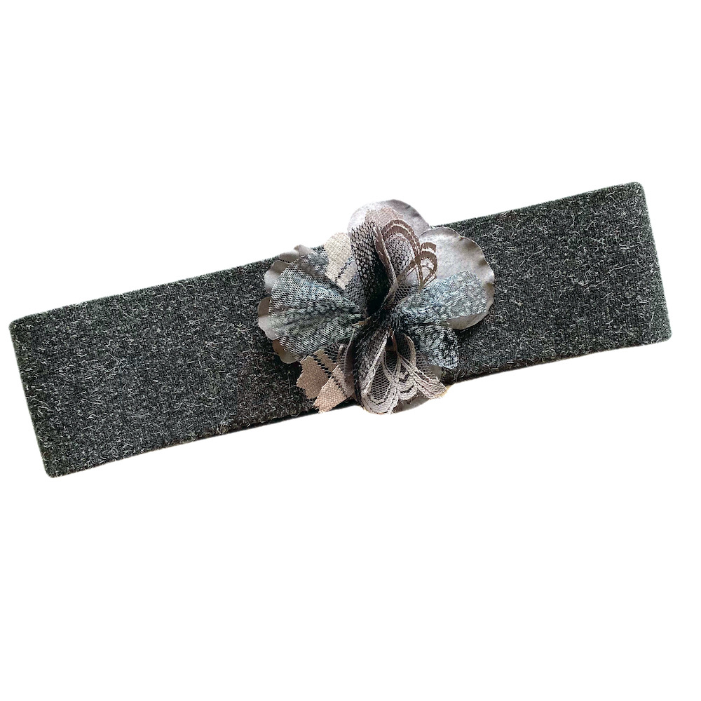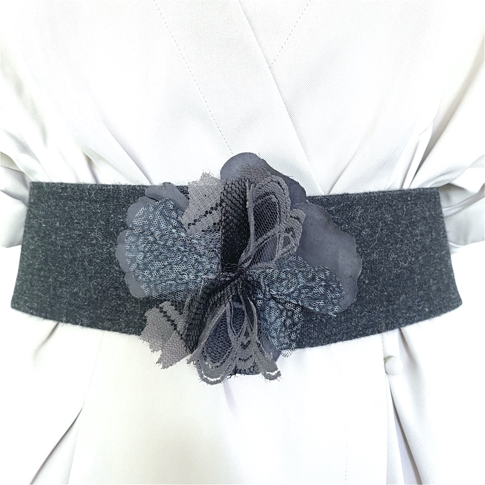 cinturón de elástico grueso con flor hecha a mano