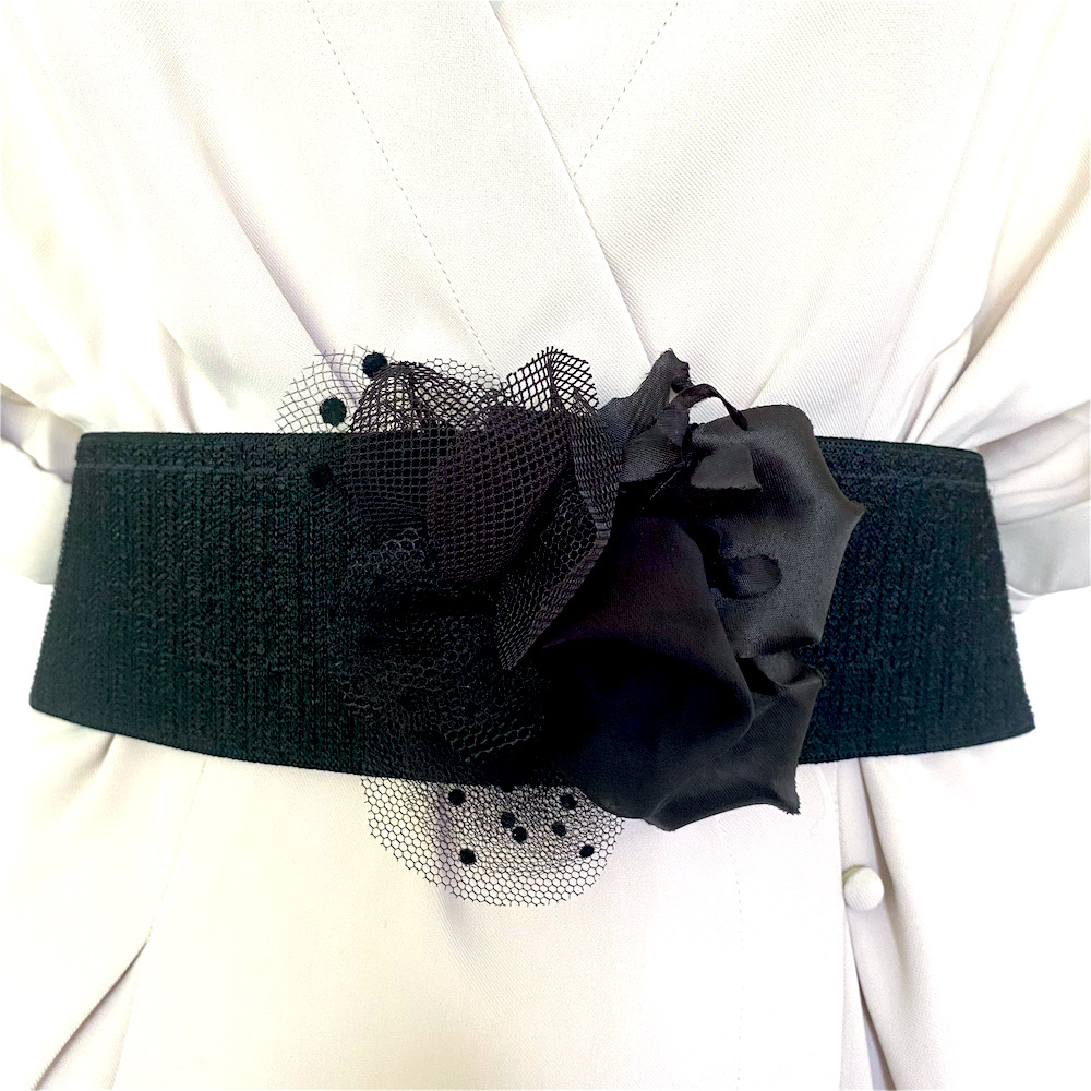 cinturón de elástico grueso con flor hecha a mano
