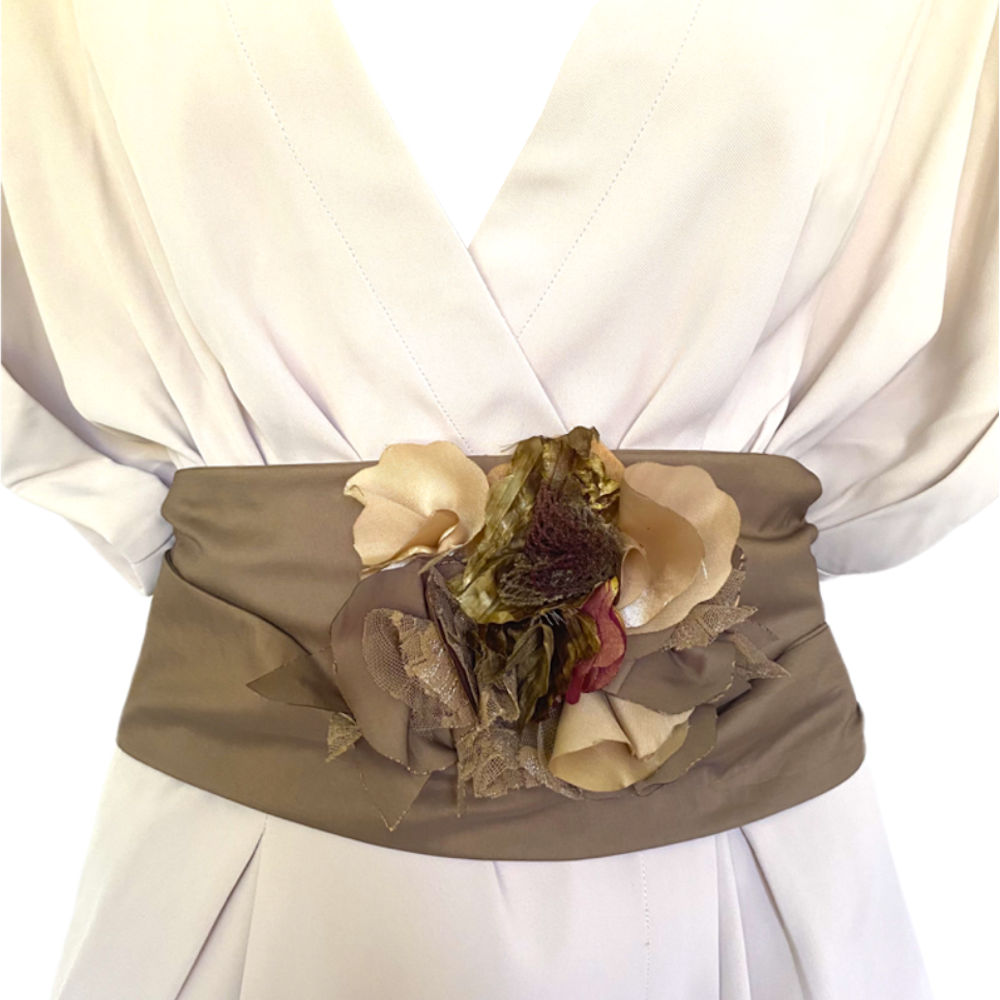 $28.000cinturón tipo faja de raso opaco con flor hecho a mano