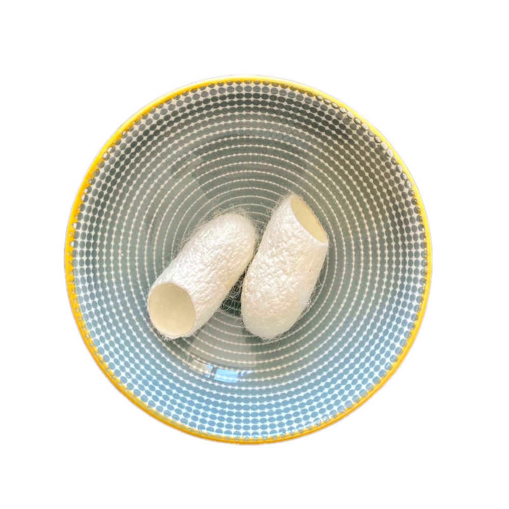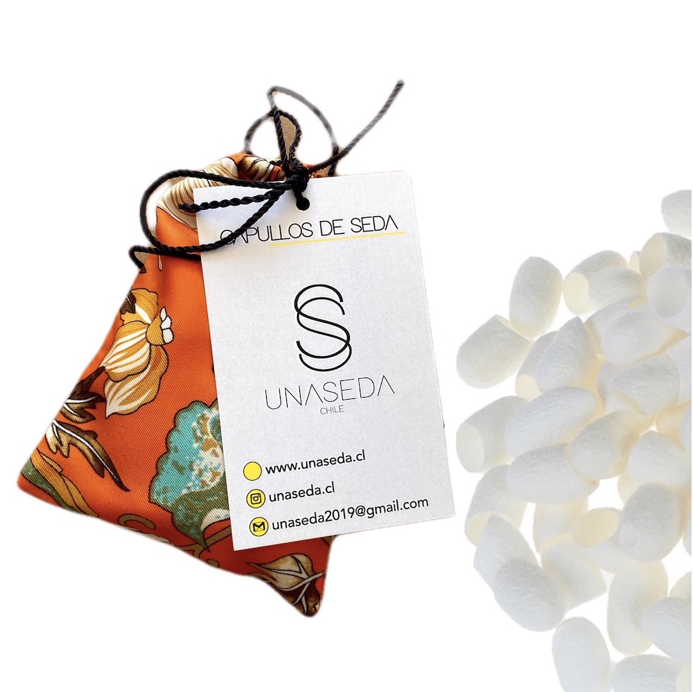 20 capullos de seda en su bolsa