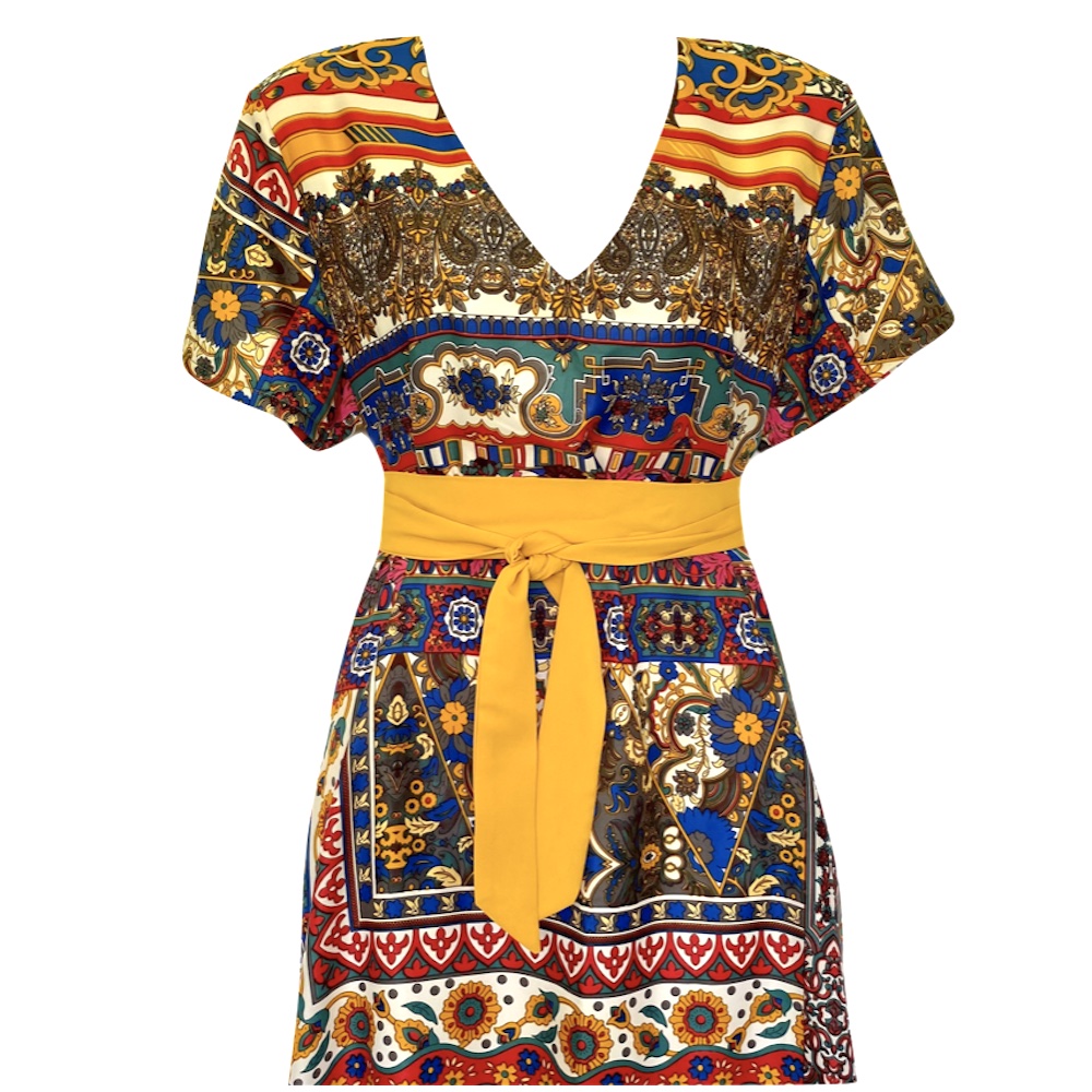 Vestido Largo Cinto Amarillo